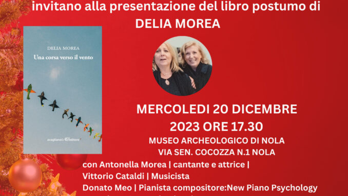 L’ingrediente principale della manifestazione sarà la presentazione del libro postumo di Delia Morea, edito daAvagliano Editore, e sarà Antonella Morea, una delle più grandi attrici e cantanti di teatro e di cinema partenopea, a raccontare il libro e sua sorella.