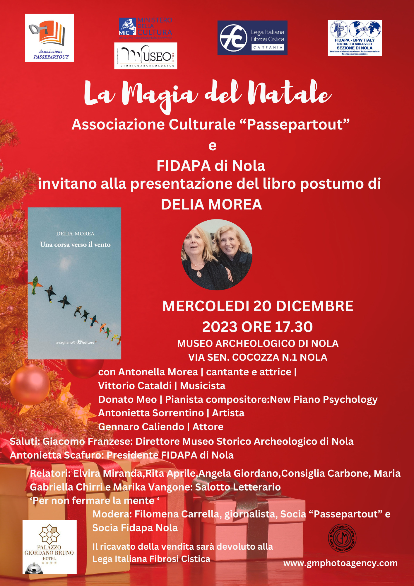 Manca ancora qualche giorno all’evento “La Magia del Natale” che si terrà mercoledì 20 dicembre alle 17.30presso il Museo Archeologico Storico di Nola. Musica, cultura, solidarietà ma soprattutto tante emozioni saranno gli ingredienti di questo momento di condivisione promosso dall’ Associazione Culturale Passepartout, in collaborazione con il Museo Archeologico Storico di Nola, la Lega Italiana Fibrosi Cistica e l’organizzazione Fidapa – Bpw Italy sezione di Nola.