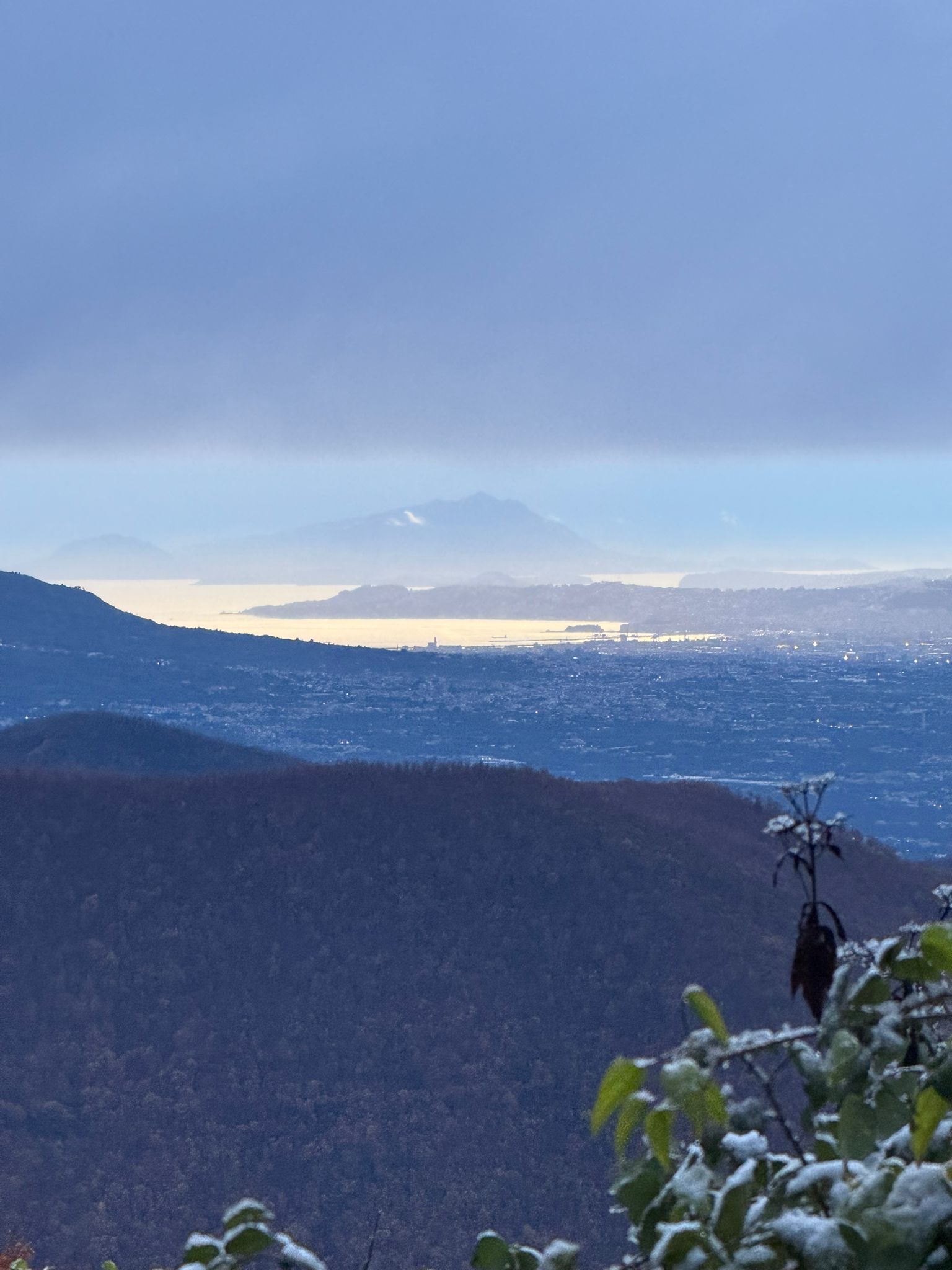 La posizione dominante regala scenari spettacolari. Nelle giornate limpide, da Campo di Spina è possibile ammirare una straordinaria veduta sul Golfo di Napoli: il profilo del Castel dell’Ovo, le sagome di Ischia e Procida, fino ai riflessi che illuminano la costa partenopea. Oggi, quel panorama si è fuso con la neve, creando un contrasto affascinante tra il bianco delle alture del Partenio e il luccichio del mare sullo sfondo.