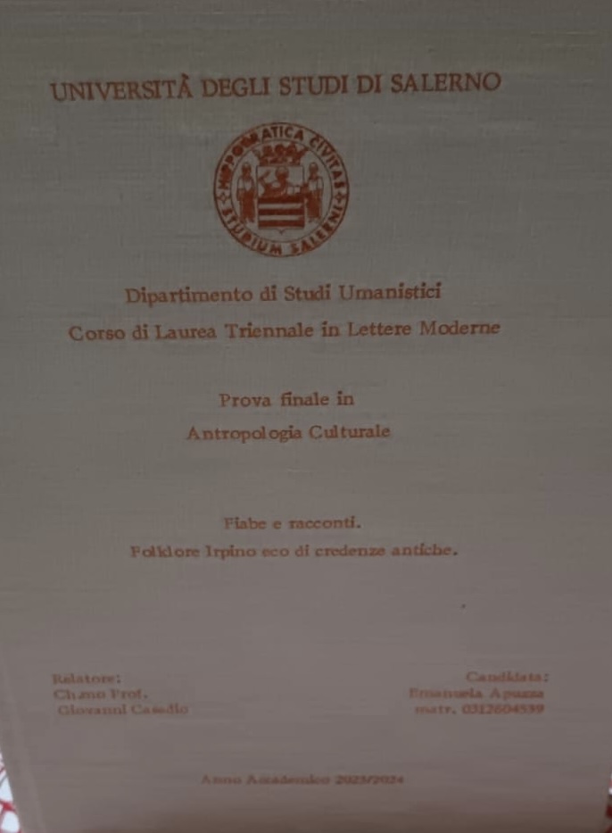 Nella tesi di laurea in Antropologia Culturale presentata da Emanuela Apuzza presso l’Università degli Studi di Salerno, è stata approfondita la ricca tradizione popolare dell’Irpinia, con un focus particolare sul rito del ciuccio e la festa di Sant’Anna a Forino. Il lavoro, intitolato “Fiabe e racconti. Folklore Irpino eco di credenze antiche”, analizza non solo il significato antropologico e culturale di queste tradizioni, ma cita anche un importante contributo pubblicato su BiNews nel 2017, a firma di Daniele Biondi, che offre un’analisi dettagliata del rito e del suo significato simbolico.