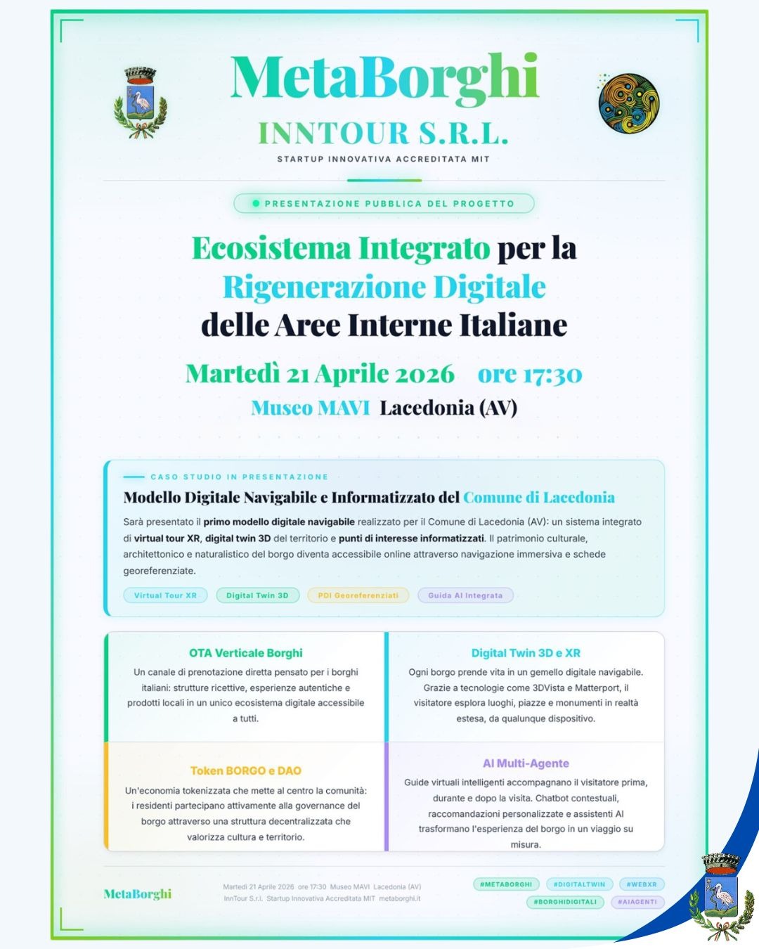 Lacedonia si propone così come laboratorio di innovazione per le aree interne, dimostrando come la trasformazione digitale possa diventare uno strumento concreto per contrastare lo spopolamento e promuovere nuove opportunità di sviluppo.