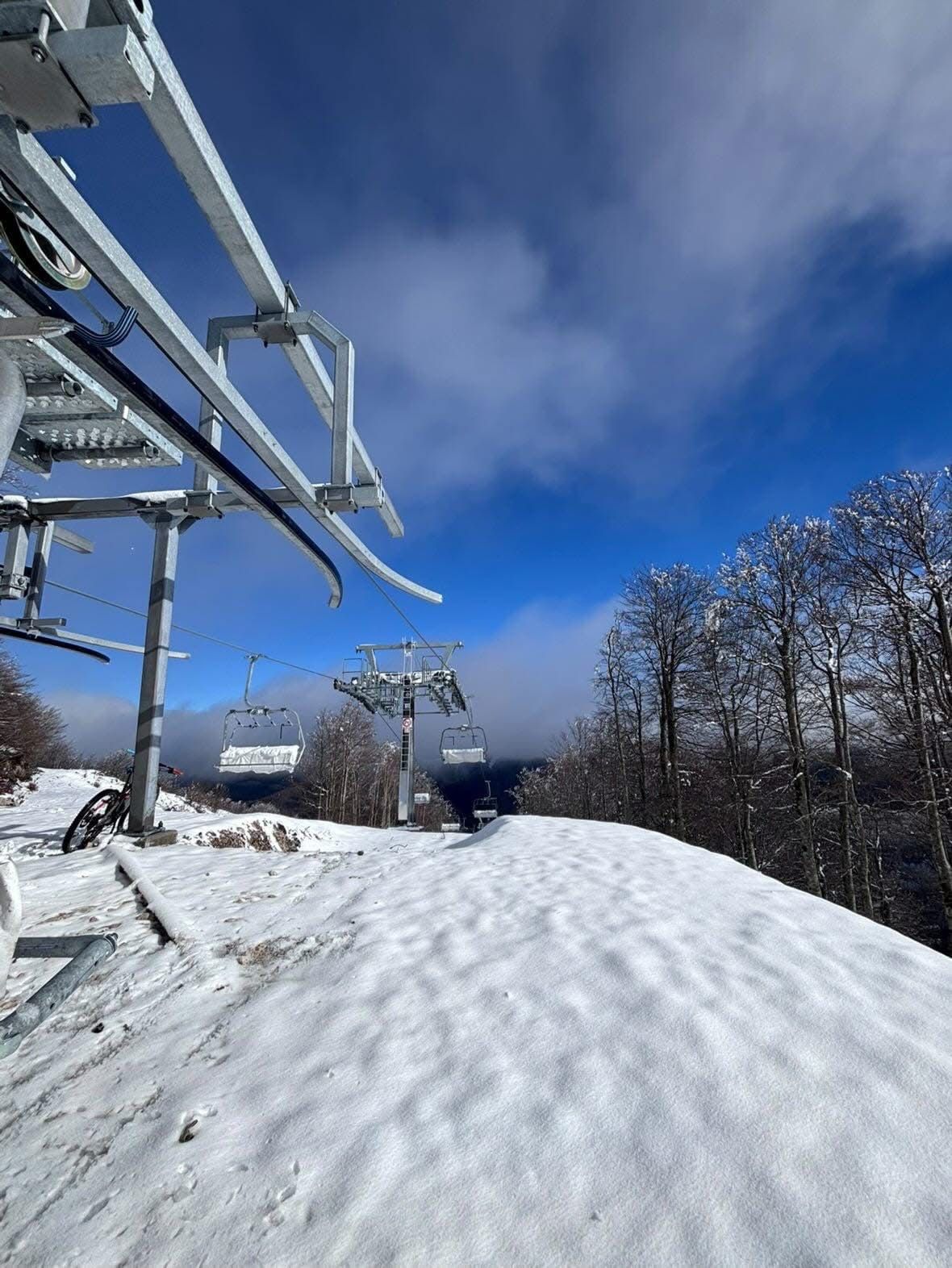 In vetta, lo scenario è particolarmente suggestivo. Dal Raiamagra si apre una visuale ampia sulle nuove funivie del Laceno, che si inseriscono nel contesto naturale senza romperne l’armonia, segnando allo stesso tempo un passo decisivo per il rilancio turistico dell’altopiano. Le cabinovie, perfettamente visibili dalla cresta, diventano quasi un elemento grafico nella distesa di neve, simbolo di un’infrastruttura moderna che guarda al futuro del comprensorio.