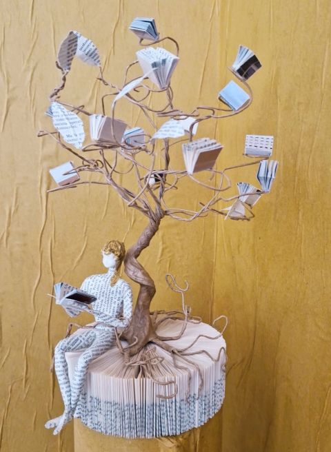 E’ la razionalità simboleggiata dall’Albero della cultura, la classica scultura in cartapesta plasmata e modellata da Cettina Prezioso. Una composizione che l’artista ha realizzato nel personale laboratorio, in cui opera ad Avella, in stretta collaborazione con Anna Napolitano. E’ la scultura–testimonial riprodotta in serie consegnata a tutti i protagonisti e animatori di Artis suavitas civitas, un mese e mezzo fa. “Raffigura- spiegò l’artista, tra le più interessanti espressione dell’arte cartapestaia di stile e matrice nolana – una persona che legge, prendendo linfa vitale e di pensiero dai valori sociali della propria terra; valori fondamentali per chi è ben radicato nel suo ambito sociale e che vanno trasmessi alle nuove generazioni”. “Il perpetuarsi e la ciclicità dei valori- aggiunse– si ritrovano e riflettono nelle radici dell’ Albero che affondano in una ruota, metafora del rinnovamento e dello scorrere inesorabile del tempo”.