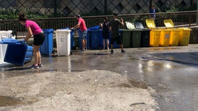 Ieri, venerdì 17 agosto, dopo la raccolta dei rifiuti da parte della società incaricata, gli abitanti del Parco La Maddalena a Lauro puliscono i contenitori e disinfettano l’area dove la sera del 15.08.2018 un abitante dello stesso Parco, in evidente stato di alterazione delle facoltà psichiche, aveva sparso buste contenente rifiuti e capovolgendo tutti i contenitori della raccolta all’ interno del parco.