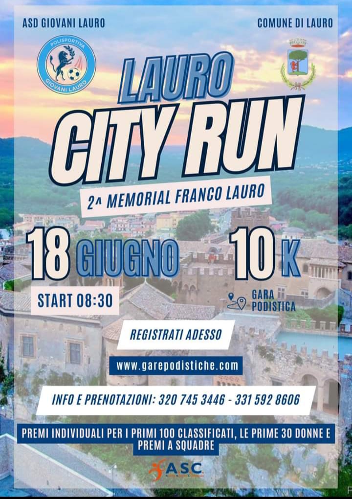 LAURO – Domenica 18 giugno, si terrà a Lauro (AV), per il secondo anno consecutivo, la gara podistica in memoria del giornalista sportivo Franco Lauro. La manifestazione è organizzata dall’ASD Giovani Lauro con il patrocinio del Comune di Lauro.