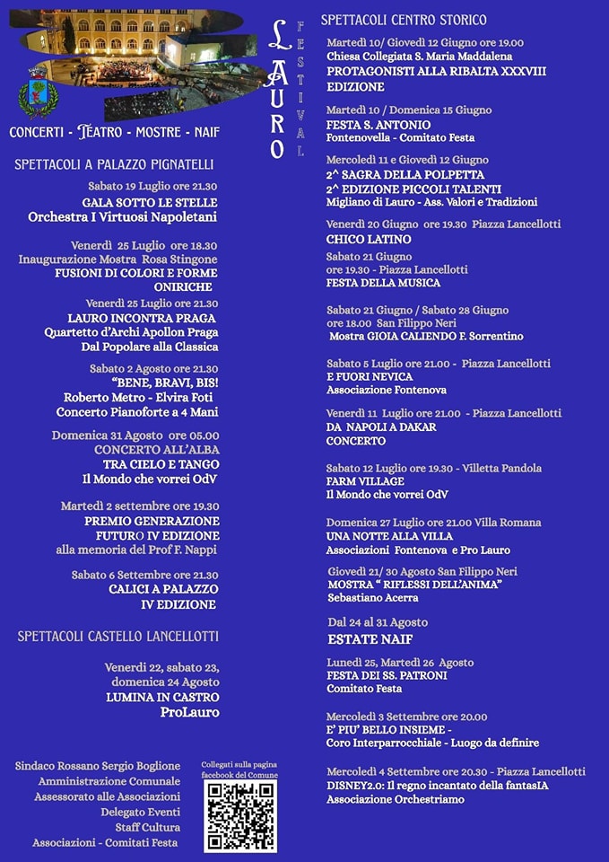 “L’estate a Lauro è un’emozione da vivere, insieme”, è il messaggio che accompagna il lancio ufficiale del programma, curato dall’assessore alle Associazioni Ilaria Aschettino, dal delegato agli Eventi Massimo Santaniello e dallo Staff Cultura.