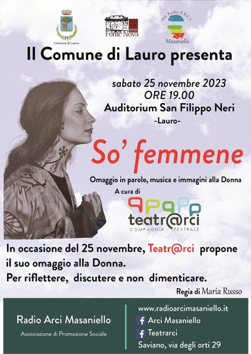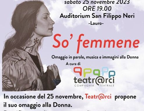“So’ Femmene”, spettacolo originale della compagnia Teatr@rci, è «un omaggio in parole, musica ed immagini alla Donna» che la compagnia teatrale sociale savianese porta in scena dallo scorso anno.