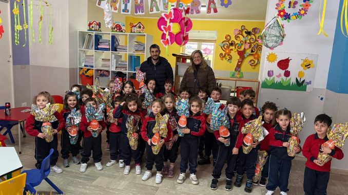 Protagonisti dell’iniziativa sono stati i bambini e i ragazzi, che hanno ricevuto le tradizionali uova di cioccolato pasquali, accolte con entusiasmo e sorrisi. Un momento di festa che ha trasformato le aule in un piccolo scenario di gioia e condivisione.