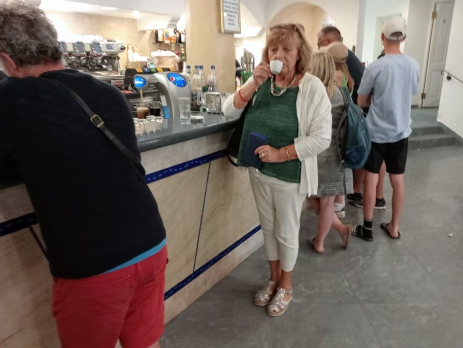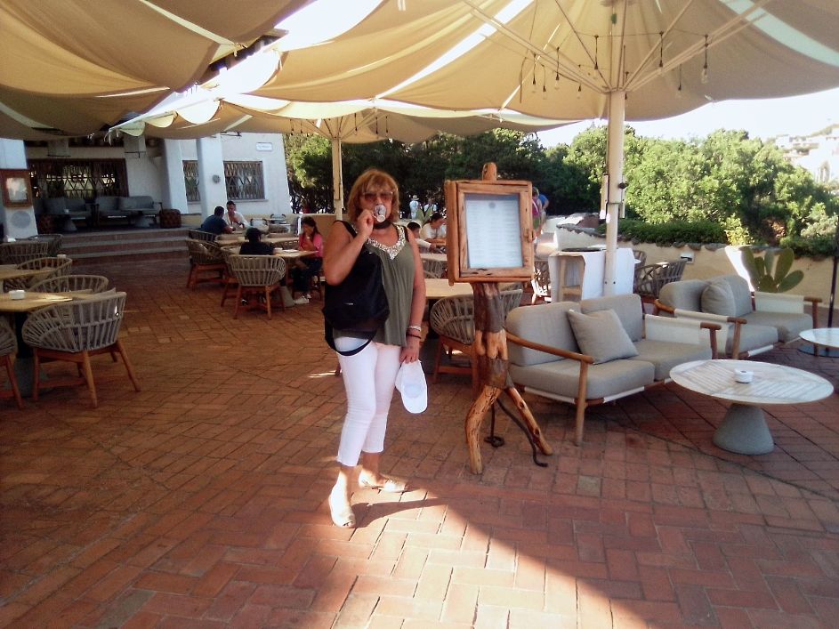 Ieri 30 agosto2023, abbiamo fotografato la Pittrice Antonietta Raduazzo al banco del bar sottostante la Piazza di Porto Cervo, e le abbiamo chiesto: