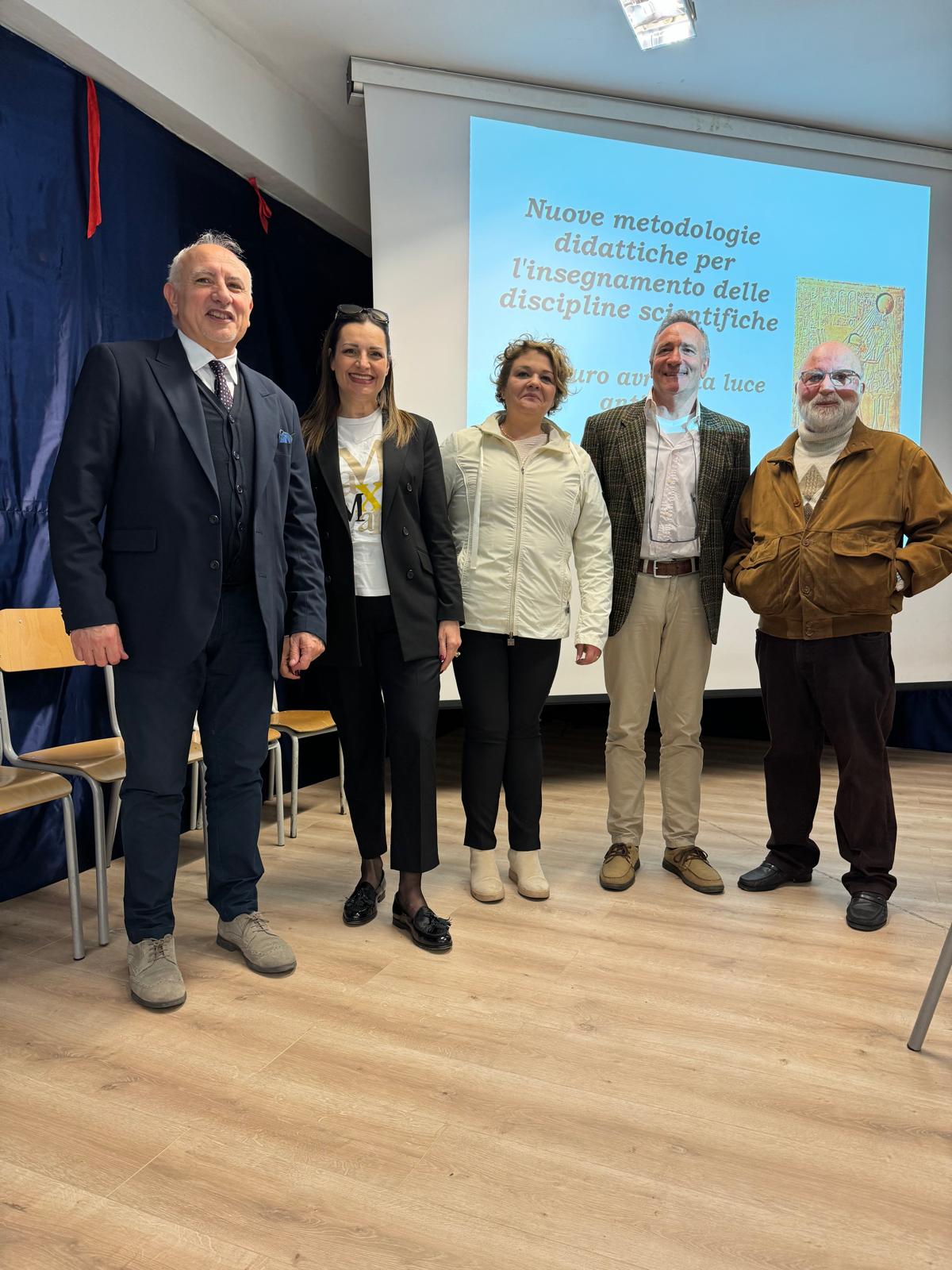 Nuove metodologie didattiche per l’insegnamento delle discipline scientifiche” è il titolo di due seminari formativi tenuti dal Prof. Roberto De Luca del Dipartimento di Fisica e del Dipartimento di Scienze Umane, Filosofiche e della Formazione dell’Università degli Studi di Salerno che attualmente collabora anche come revisore di manoscritti scientifici, con varie riviste scientifiche. I due incontri, fortemente voluti dalla Dirigente Scolastica Filomena Colella, si sono svolti nelle giornate del 27 marzo e 10 aprile scorsi, presso l’Aula Magna dell’I.C. Aurigemma di Monteforte Irpino, ed hanno coinvolto i docenti di matematica, scienze e tecnologia dell’istituto. La matematica e in particolare la statistica, sono state protagoniste della prima lezione, mentre la luce e l’energia della seconda. La statistica, da insegnare ai bambini e ai ragazzini della scuola secondaria di primo grado, ad esempio, è stata proposta con attività ludiche da realizzare con gli alunni, attraverso la costruzione di scatole in cui inserire delle palline colorate, calcolando poi la probabilità di poter pescare un determinato colore, attraverso numeri che in termini scientifici si chiamano fattoriali, ma che ai piccoli allievi vengono proposti sotto forma di gioco, creando per esempio, una combinazione semplice. Il Professore De Luca, anche attraverso una serie di slide, ha dato degli input ai docenti presenti e degli spunti di riflessione non solo per ciò che concerne la didattica delle discipline scientifiche, ma anche per ciò che riguarda il rispetto dell’ambiente e l’uso consapevole delle risorse energetiche presenti sulla Terra. Si è soffermato in particolare sulla luce del Sole, sul vento, sull’acqua e sull’idrogeno, che pur essendo l’elemento più abbondante sulla Terra, a causa del peso atomico più leggero, presenta difficoltà nel trasformarlo in energia. Ha citato Carlo Rubbia, premio Nobel per la fisica, il quale già nel 2008 aveva affermato che il Sole è una fonte di energia non soggetta a monopoli e a bollette. “Basti pensare che un ipotetico quadrato di specchi, lungo 200 chilometri per ogni lato, – aveva dichiarato Rubbia in un’intervista a La Repubblica – potrebbe produrre tutta l’energia necessaria all’intero pianeta. E un’area di queste dimensioni equivale appena allo 0,1 per cento delle zone desertiche del cosiddetto sun-belt. Per rifornire di elettricità un terzo dell’Italia, un’area equivalente a 15 centrali nucleari da un gigawatt, basterebbe un anello solare grande come il raccordo di Roma”.