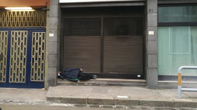 Forse per condizione sociale o forma mentis siamo abituati a pensare che alcune cose, alcuni fatti, non possano mai invadere il nostro spazio e quindi tendiamo a considerarci “immuni”. Il fatto è che non siamo immuni da niente. Siamo soggetti alle emozioni, alle malattie, a casi e condizioni delle volte paradossali, siamo soggetti all’indifferenza; un’indifferenza che detta le regole della nostra vita. La foto proposta nell’articolo in questione è stata scattata a Nola, in Via Anfiteatro Laterizio, e ritrae un uomo di mezza età abbandonato a se stesso su un marciapiede dove riposa e si ripara dalla pioggia. Quest’uomo è chiamato barbone, vagabondo, senzatetto o clochard se si preferisce dare un’etichetta alla Francese ad un invisibile, un invisibile che resta pur sempre un uomo. Ci siamo abituati a vedere questi uomini e donne in tv, sui social, in grandi Città di cui ci interessa ben poco; ora è possibile toccarli con mano.  Nell’era del progresso, della bella vita, della “finta felicità”, dell’ostentazione, della falsità, si vive una chiusura mentale che fa rabbrividire. Si è sempre propensi a raggiungere nuovi traguardi anche e soprattutto schiacciando gli altri, senza considerare che i veri traguardi, le vere soddisfazioni, sono date dalle piccole cose. Viviamo in una società accecata dall’odio,dall’egoismo, dal malessere fisico e mentale e non teniamo conto del fatto che la nostra “sana” produttività possa essere il motore di cose belle. Si tende a cacciare l’altro non ricordando che siamo uomini affini per natura e non uomini in guerra. Per cui , perchè pensare che alcune cose non ci riguardino? Facciamo tutti parte dello stesso cerchio, proprio come quest’uomo (di cui non si conosce nome e storia) abbandonato all’indifferenza dei suoi simili.