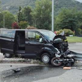 Omicidio stradale dopo una lite per la viabilità oggi pomeriggio, all’altezza della rotonda di Condove, in Val Susa, all’ingresso del paese sulla statale 24. Un uomo alla guida di un pullmino nero ha travolto una moto sulla quale viaggiavano due giovani: nell’impatto, che come dimostra la foto qui accanto, è stato particolarmente violento, una ragazza è morta e il conducente della motocicletta è rimasto gravemente ferito, tanto da essere trasportato in elicottero al Cto di Torino. Secondo quanto un testimone ha riferito ai carabinieri, un paio di chilometri prima ci sarebbe stata una discussione, per motivi forse legati alla viabilità, tra il conducente del pullmino e il motociclista, il quale prima di allontanarsi avrebbe sferrato un pugno contro un finestrino del veicolo. A questo punto l’autista avrebbe perso la testa e si sarebbe lanciato all’inseguimento del motociclista. Alla rotonda, quando la moto è stata costretta a rallentare, il conducente del pullmino avrebbe invece accelerato travolgento i due ragazzi, schiacciandoli addirittura contro il guard rail. La giovane è morta sul colpo, il centauro, come si diceva, è in gravi condizioni. I carabinieri stanno interrogando i testimoni e l’uomo indicato come il responsabile di un probabile omicidio rimasto illeso nonostante la violenza dell’impatto. E’ stato anche avvisato il magistrato di turno che si sta recando sul luogo dell’incidente.