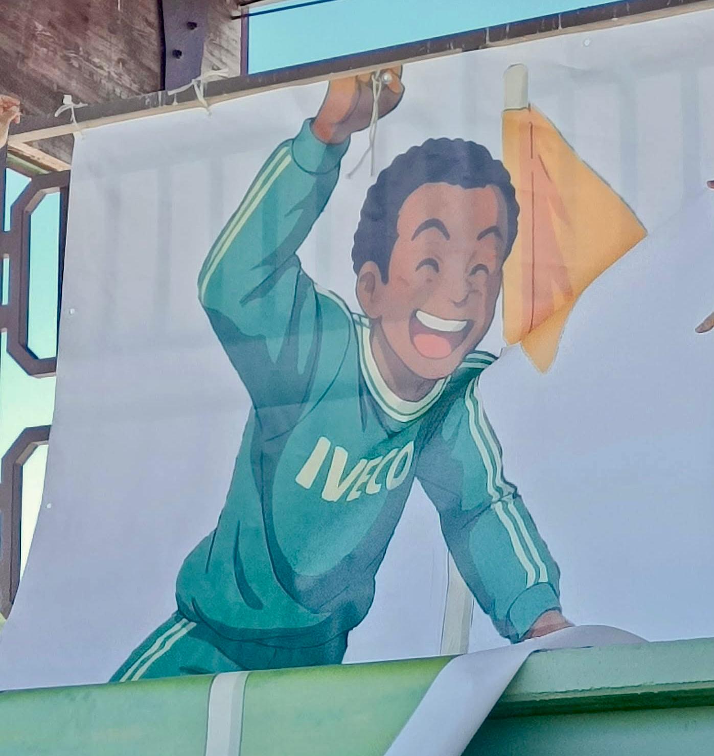 Ad accompagnare il lavoro sul campo, anche un piccolo momento di culto sportivo. Sugli spalti è infatti apparso uno striscione dedicato a Juary, ex attaccante brasiliano noto per le sue danze attorno alla bandierina dopo ogni gol. Una figura iconica del calcio anni ’80, capace ancora oggi di evocare emozioni e immagini di un’epoca che molti tifosi biancoverdi portano nel cuore.