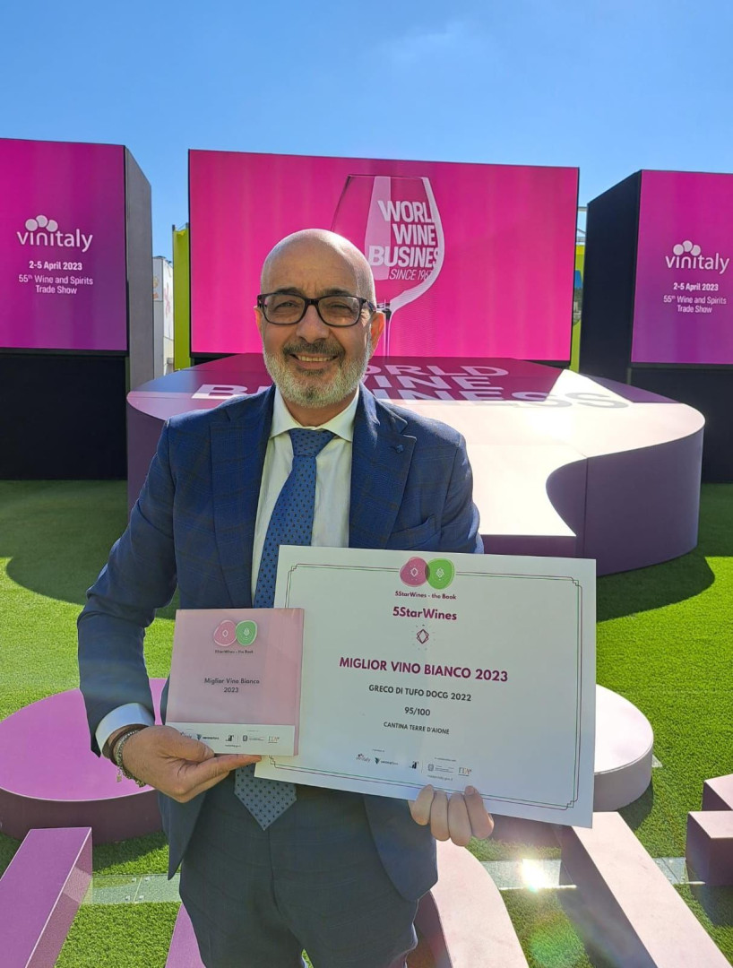 Tufo (Avellino) – È irpino il vino bianco migliore d’Italia del 2023 secondo il prestigioso concorso internazionale 5StarWines. Si tratta del Greco di Tufo Docg 2022 della cantina di Tufo (Avellino) Terre D’Aione, che ha conquistato il punteggio di 95/100. Ad assegnare l’importante riconoscimento è stata la giuria del concorso promosso da Vinitaly, una delle più importanti fiere di settore al mondo.