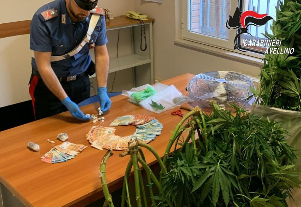 Ieri sera a Montecalvo Irpino, durante un servizio di controllo alla circolazione stradale, i Carabinieri hanno fermato il predetto alla guida di un’auto. L’anomalo atteggiamento manifestato dall’automobilista ha indotto i militari ad approfondire le verifiche. All’esito dell’immediata perquisizione personale e veicolare, il giovane è stato trovato in possesso di una dose di cocaina e una decina di grammi di marijuana, occultati in un cassetto portaoggetti dell’auto. La successiva perquisizione domiciliare ha consentito di rinvenire altre 9 dosi di cocaina, circa 40 grammi di marijuana nonché 6 piante di cannabis indica coltivate all’interno di una serra presente nel giardino. Quanto rinvenuto è stato sottoposto a sequestro, unitamente a materiale utile per il confezionamento delle dosi ed a circa 3.800 euro in contanti, ritenuti provento dell’illecita attività di spaccio.