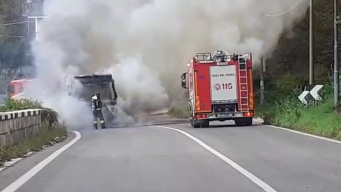 Un pullman di linea è andato letteralmente a fuoco sulla Nazionale delle Puglie in località Monteforte, a confine con Mugnano del Cardinale. Le fiamme hanno letteralmente distrutto il mezzo e un fumo acre ha invaso la zona. Solo paura per conducente che stava portando il mezzo al deposito. Sul posto sono intervenuti i Vigili del Fuoco di Avellino per spegnere le residue fiamme di un mezzo integralmente distrutto.