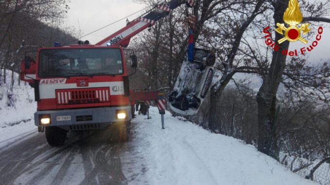 MONTEFORTE. Auto, causa neve finisce in una scarpata e il conducente in ospedale. Ecco le operazioni di soccorso dei Vigili del Fuoco.Video e Foto