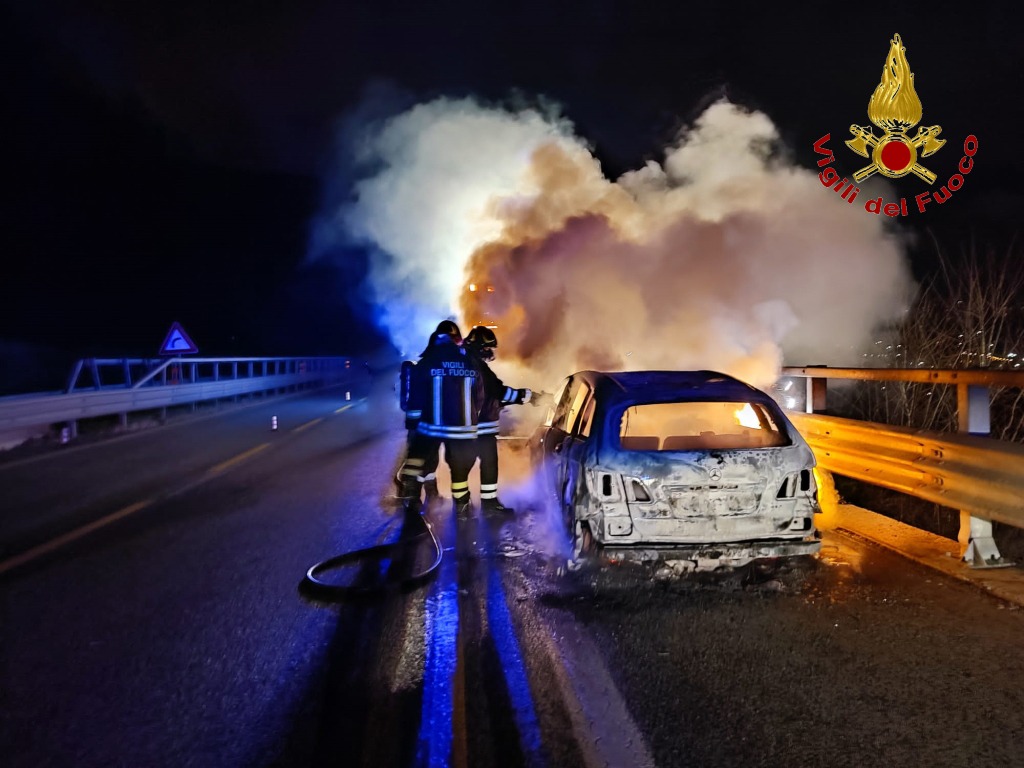 Sulla A 16 Napoli – Canosa, nel territorio del comune di Monteforte Irpino, in direzione Canosa, i Vigili del Fuoco sono intervenuti questa sera per un incendio di un’autovettura in transito. Le fiamme che hanno avvolto il veicolo sono state spente mettendo in sicurezza l’area. A bordo dell’auto una famiglia di tre persone ed il loro cane, che stava rientrando a Lacedonia paese di origine, la quale oltre un comprensibile spavento non ha subito conseguenze.