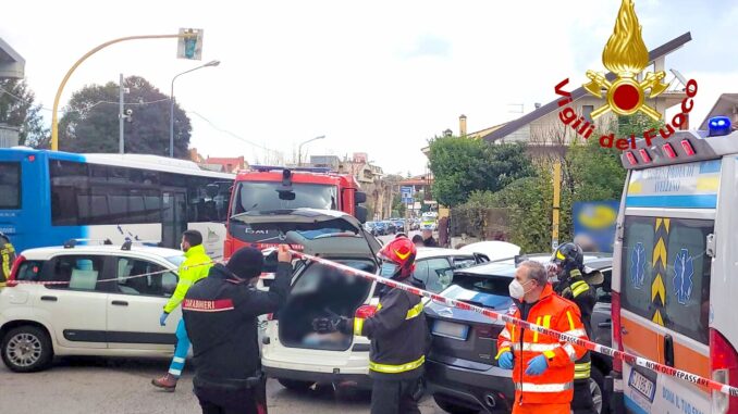 I Vigili del Fuoco di Avellino, intorno alle ore 13’30 di oggi 11 dicembre, sono intervenuti nel comune di Monteforte Irpino sulla SS 7 Bis, in località Alvanella, per un incidente stradale che ha visto coinvolte tre autovetture scontratesi ad un incrocio. A bordo dei tre veicoli, vi erano complessivamente sei persone di cui una era rimasta bloccata nell’abitacolo, e dopo essere stata liberata è stata affidata ai sanitari del 118 intervenuti i quali ne disponevano il trasporto presso l’ospedale Moscati di Avellino, insieme alle altre cinque, per essere sottoposte a cure mediche. I Vigili del Fuoco curavano la messa in sicurezza delle autovetture incidentate e dell’area interessata.