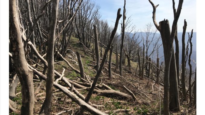 Come vi avevamo già parlato in un precedente articolo, salendo ull’Acerone da Pannarano siamo incorsi in un inaspettato problema. Il problema interessa più che altro l’area appartenente al comune di Sperone, nella quale, nel tratto dall’Acerone al Ciesco Bianco, l’ambiente risulta fortemente compromesso da una causa non ben definita. Già alcuni anni fa sul Ciesco Bianco moltissimi alberi erano morti, ma adesso il problema risulta aggravato, gli alberi bruciati, secchi, spezzati, si estendono per vari ettari, nella zona dall’Acerone al Ciesco Bianco.