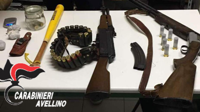 Le citate armi e munizioni, tutto illegalmente detenuto, sono state sottoposte a sequestro unitamente a quattro involucri contenenti sostanza stupefacente di tipo marijuana nascosti all’interno di un megafono posto su di un tavolino del salone.