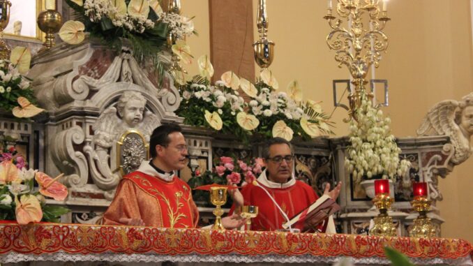 Ieri è stato ricordato solennemente il 25 maggio poiché in quel giorno del 1802 fu ritrovato il Sacro Corpo di Santa Filomena. Nella Messa serale il Rettore ha ricordato il forte legale esistente tra Santa Filomena e Paolina Jaricot, quest’ultima ricevette dalla Santina un miracolo nel 1835. La Jaricot pregò tre giorni seduta su una sedia dinanzi al Corpo di Santa Filomena e si rialzo` guarita. La sedia sulla quale si sedette Paolina è custodita come Reliquia nel Santuario e ieri è stata collocata ai piedi dell’altare maggiore. Il Rettore durante l’ omelia ha dichiarato: “Domenica a Lione, abbiamo vissuto momenti di grande spiritualità, la cerimonia di Beatificazione di Paolina si è tenuta dinanzi a 12000 persone e in streaming davanti al mondo. È risuonato forte l’eco del rapporto tra Santa Filomena e Paolina. Il Cardinale Tacle ha ricordato che Paolina, nel corso della sua vita, si era recata qui a Mugnano del Cardinale, un paese poco distante da Napoli, nel Santuario di Santa Filomena. Ecco dunque che oggi, più che mai, Santa Filomena è attuale come lo è il suo messaggio. Ella ci invita ad amare Gesù e ad essere puri di cuore “. Al termine della Celebrazione è stata collocata una corona di fiori innanzi alla tomba di don Francesco De Lucia, primo Rettore del Santuario, che porto` a Mugnano le Sacre Spoglie della Principessina il 10 agosto 1805.