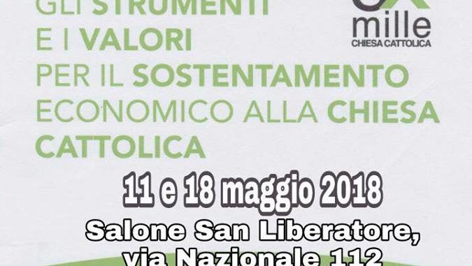 L’11 e il 18 maggio, presso il salone San Liberatore adiacente la Parrocchia Maria Santissima del Carmine e San Liberatore, si terranno degli incontri formativi che spiegare il perché e come destinare l’8 X mille, alla Chiesa Cattolica. L’evento è stato organizzato dalla parrocchia mugnanese e dal Progetto Policoro.
