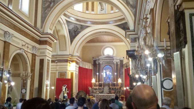 Stamane, alle ore 10, nel Santuario di Santa Filomena, è stata esposta la statua lignea di Sant’Antonio da Padova. A seguire è stata celebrata la Santa Messa da don Giuseppe Giuliano e presieduta dal rettore don Giovanni Braschi e da don Giovanni Picariello, con l’assistenza del seminarista Gioacchino Acierno. La chiesa era gremita da fedeli che hanno potuto ammirare anche l’antico quadro raffigurante l’effige del Santo, che originariamente era esposta nella cappella a lui dedicata e che poi fu sostituita dalla Statua che si venera oggi. Il rettore ha preannunciato che appena sarà allestito il museo del Santuario ivi vi saranno esposte tutte le opere di proprietà del Santuario stesso, le quali in base ad un antichissimo decreto non possono essere alienate, pena la scomunica.