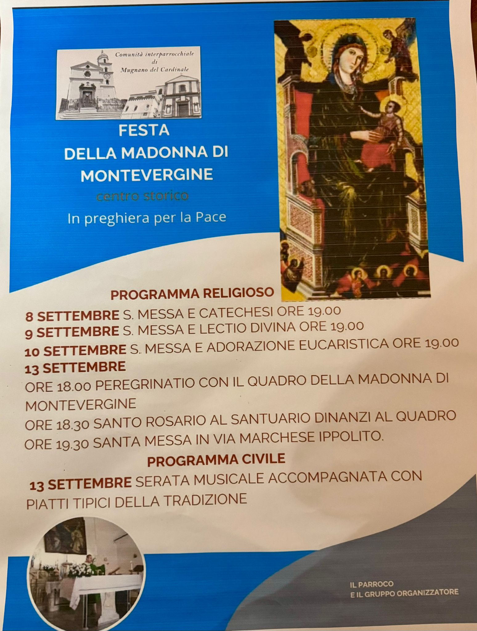 La comunità interparrocchiale di Mugnano del Cardinale si prepara a vivere uno degli appuntamenti più sentiti dell’anno: la Festa della Madonna di Montevergine, che si terrà nel centro storico del paese con un programma ricco di momenti religiosi e culturali.