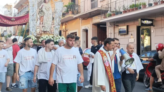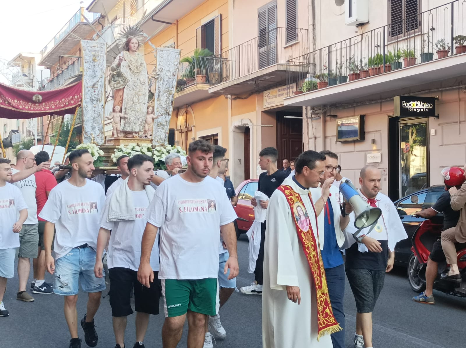 Ieri si è tenuta la processione di Santa Filomena a cui hanno partecipato centinaia di fedeli. Il culto della Santina è diffuso in tutto il mondo e dunque tra i fedeli presenti al corteo religioso non c’erano solo i locali, ma anche vari forestieri. La Statua è stata portata a spalla dai cullatori e con loro si è congratulato il Rettore. Alla processione vi hanno partecipato le varie associazioni e comitati presenti sul territorio. Si è tenuta anche la tradizionale e meravigliosa infiorata in onore della Principessina del Paradiso.(L.C.) video e foto