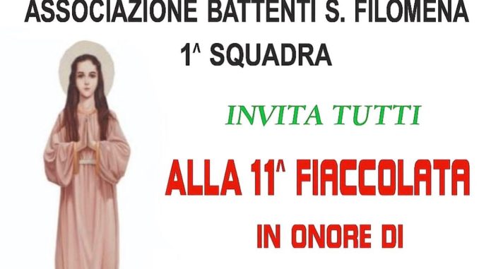 Mugnano del Cardinale – Oggi, domenica 31 agosto 2025, la comunità si prepara a vivere un appuntamento che unisce fede, tradizione e identità. Alle 19.30 si terrà infatti l’11ª fiaccolata in onore di Santa Filomena, organizzata dall’Associazione Battenti S. Filomena – 1ª Squadra.