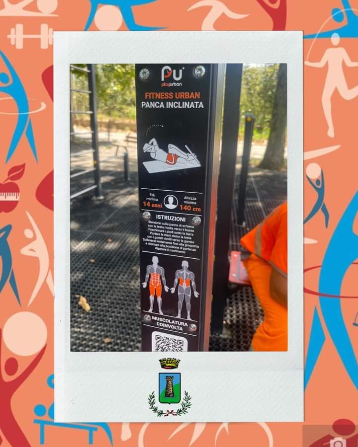 L’area sarà dotata di attrezzature quali una panca inclinata che potrà essere utilizzata  da giovani con età minima 14 anni e con altezza 140 cm, una Barra Trazioni Verticale fruibile anche da chi è in carrozzina, attrezzo Bike con età minima 14 anni e altezza minima 140 cm, ARM AND LEG BIKE età minima 14 anni fruibile anche per chi  è in carrozzina, Double Walker età minima 14 anni altezza 140 cm, Hand Bike per età minima 14 anni altezza 140 cm, Serpentina età minima 14 anni fruibile anche per chi è in carrozzina e infine si potrà praticare anche il Turning Weist dall’età di 14 anni con altezza minima 140 cm.
