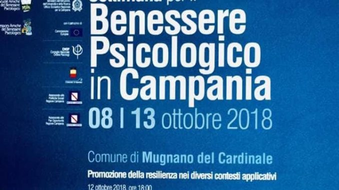 “Promozione della resilienza nei diversi contesti applicativi” è il titolo della IX edizione della settimana per il Benessere Psicologico indetta dall’Ordine degli Psicologi della Campania. Parteciperanno il Dott. Alessandro Napolitano, Sindaco di Mugnano del Cardinale, Antonella Bozzaotra, Presidente Ordine Psicologi. A Relazionare  Maddalena Criscuolo, Psicologa Psicoterapeuta Ottavio Di Grazia, Docente di Storia delle religioni Ebraiche dell’Università “Suor Orsola Benincasa”, Prof. Dott. Giacomo Benassai, Dipartimento di medicina clinica e chirurgia dell’Università Federico II, Tiziana Tomeo Avvocato Cassazionista, Vice Procuratore Onorario Referente Regionale Associazione “Minori in primo piano onlus”. L’appuntamento e per il 12 ottobre 2018, ore 18:00 c/o Caffè Aragonese via Roma,134 Mugnano del Cardinale (AV).