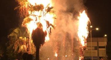 Un atto di teppismo di estrema gravità si è verificato questa sera a Mugnano del Cardinale esattamente nella villetta comunale, dove alcuni teppisti hanno dato fuoco diverse alberi di palme (foto) che immediatamente hanno preso fuoco distruggendo e creando un’atmosfera che ha lasciato senza parole i numerosi residenti della zona. Da tenere presente inoltre il pericolo per le abitazioni che si trovano nelle vicinanze le cui fiamme potevano arrecare danni e pericolo alla incolumità delle persone. Già in altre occasioni ci eravamo occupati dello stato di degrado in cui si trova la villa comunale, che dovrebbe rappresentare un centro di incontro e di aggregazione per giovani e meno giovani, invece rappresenta lo stato di degrado e di abbandono di un paese che non merita ciò.