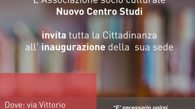 Venerdì 20 dicembre, alle ore 19.30, in via Vittorio Emanuele 120, sarà inaugurata la sede dell’associazione socio culturale Nuovo Centro Studi. La popolazione è invitata a partecipare.Mugnano del Cardinale   Venerdì sarà inaugurata la sede del Nuovo Centro Studi