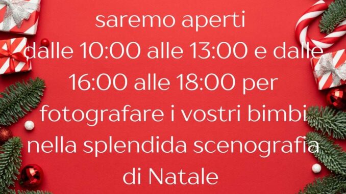 È ufficialmente iniziato il countdown per la festa più attesa dell’ anno il Santo Natale. Una ricorrenza che porta gioia in ogni cuore specialmente in quelli dei più piccoli. Nella suggestiva scenografia natalizia allestita presso lo studio fotografico di Carmine Felice Napolitano i vostri figli o nipoti potranno essere immortalati in scatti d’autore. Non perdete l’occasione, fate vivere ai bimbi le emozioni natalizie immersi in un’atmosfera magica. Ogni giorno, anche di domenica, potete recarvi presso lo studio fotografico ove il personale qualificato vi accoglierà donandovi anche dei gadgets.