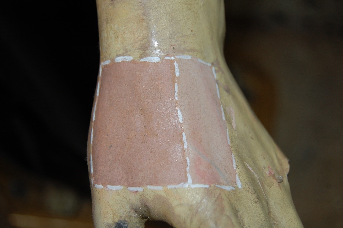 Successivamente è stata eseguita la selezione materica della superficie, utilizzando sempre gesso e colla di coniglio.