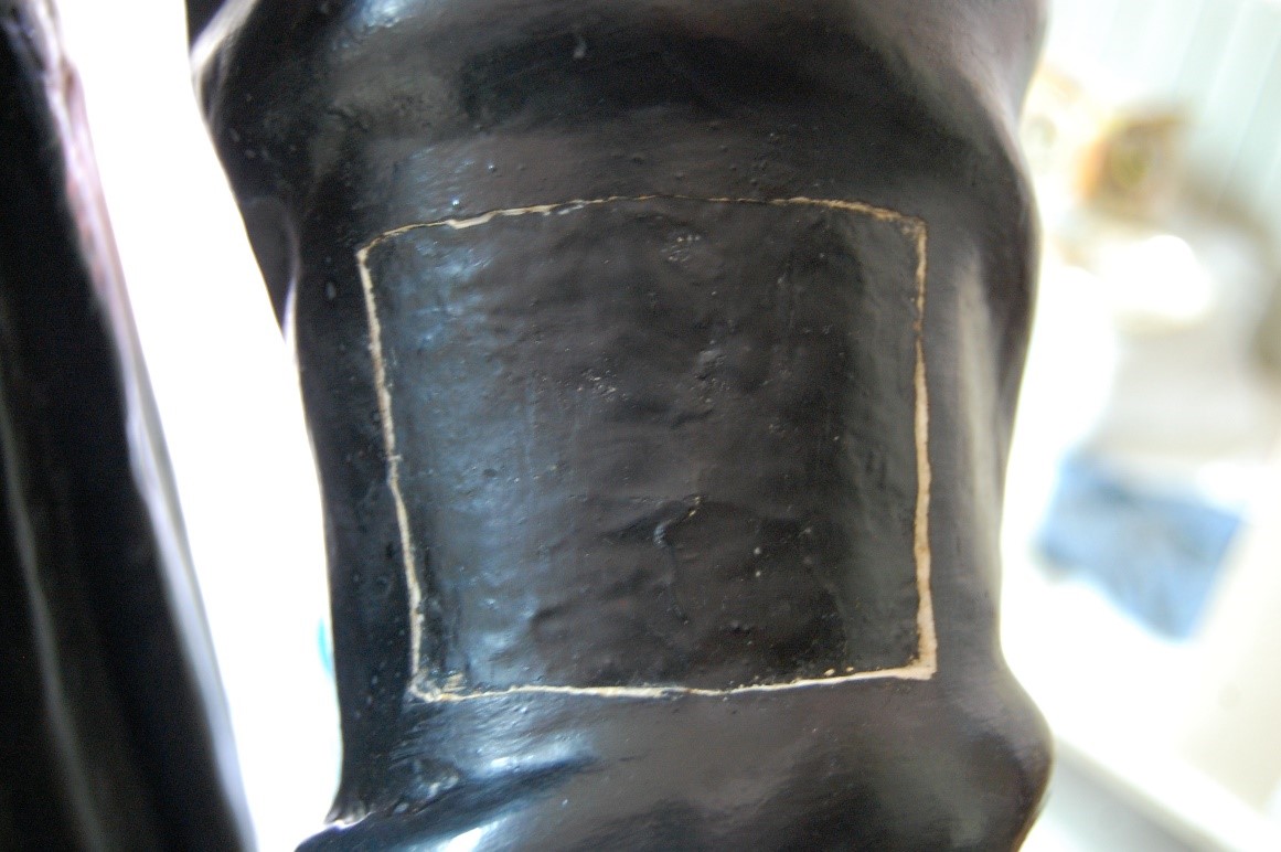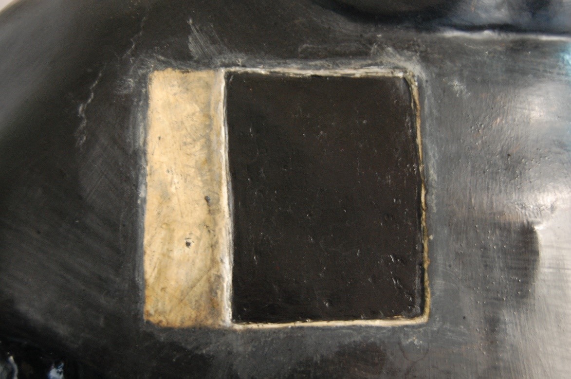 La scultura è sta, poi, verniciata a pennello con vernice mastice diluita al 50% in essenza di petrolio.