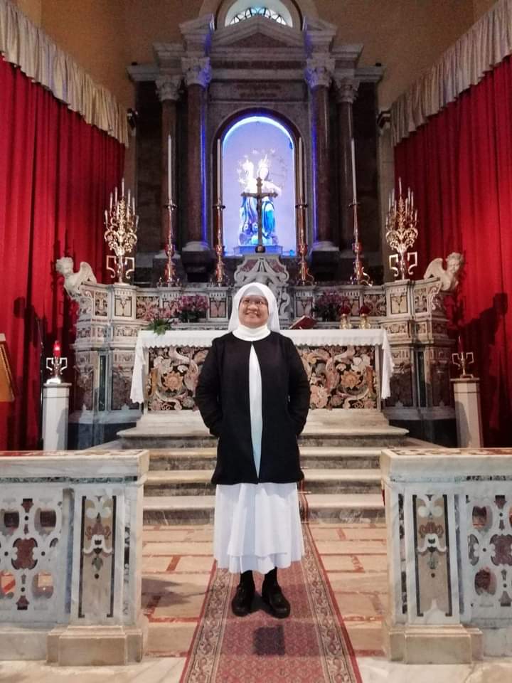 “Siano lodati Gesù e Maria. Il mio non è un addio. Ringrazio il Signore per il dono della vita, della vocazione e della missione. Lo ringrazio per avermi dato la possibilità di servire Santa Filomena. La Madonna delle Grazie e Santa Filomena sono state per me forza e ispirazione nella vita quotidiana. Ringrazio tutti, senza fare nomi. Grazie a te per avermi salutato ogni giorno, per aver cucinato, per avermi dato un passaggio con la tua auto. Grazie per aver aperto le porte di casa tua. Devo citare don Giovanni che è stato il mio primo Rettore. Prima io lavoravo a scuola, mi occupavo di catechismo. Don Giovanni è stato come un padre per me. Ringrazio il vescovo Francesco Marino per averci accolto. Ringrazio don Pasquale per l’ascolto. Un grazie a don Giuseppe per il lavoro svolto. Ringrazio Marie Burns che è come una sorella per me. Ringrazio suor Connie e la nuova arrivata suor Debbie, la Congregazione delle Figlie di Maria di cui faccio parte. Uniamoci in preghiera”.