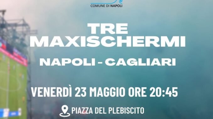 In occasione della partita Napoli-Cagliari, in programma venerdì 23 maggio alle ore 20:45 allo Stadio Diego Armando Maradona, il Comune di Napoli ha predisposto l’allestimento di tre maxischermi in altrettante piazze della città per consentire ai tifosi di seguire insieme l’attesissimo match.