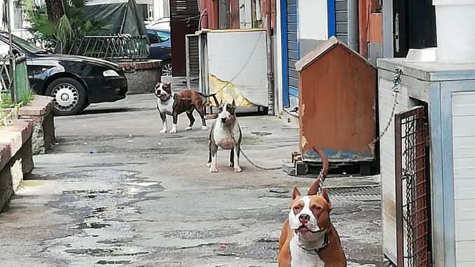 “Tre Pitbull, un Rottweiler e un pastore tedesco legati a catene corte di un metro e mezzo, nel centro di Napoli, a due passi dalla Prefettura”. Lo denuncia Marialuisa Gentile, referente locale della onlus Animalisti Italiani. “Detenere degli animali in quelle condizioni – prosegue – è maltrattamento animale. È evidente l’incompatibilità con il comportamento della specie di riferimento. L’animale, impossibilitato a muoversi, diventa tra l’altro più aggressivo e stressato, inoltre può essere neutralizzato facilmente, se l’obiettivo è tenere lontani gli estranei. La norma vigente mira a tutelare gli animali quali esseri viventi in grado di percepire dolore, anche nel caso di lesioni di tipo ambientale e comportamentale. In ragione di tutto ciò abbiamo attivato la Garante per la tutela degli animali, Stella Cervasio, che ha richiesto l’intervento urgente dei vigili urbani. L’Asl di competenza è stata avvisata e procederà ad inviare degli operatori da affiancare nell’attività di sequestro”. “Non sono cani da combattimento – conclude l’animalista – una volta che avranno completato le visite veterinarie avranno bisogno di stallo o di una nuova casa. Non possiamo permettere che questi esseri finiscano nel canile”.