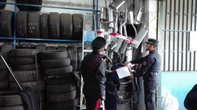 A Giugliano in Campania denunciato un gommista 62enne incensurato per gestione illecita di rifiuti pericolosi ed emissioni incontrollate in atmosfera. In un’area antistante l’attività erano stoccati senza controllo decine di pneumatici fuori uso.