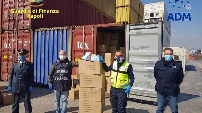In piena emergenza sanitaria COVID-19, i funzionari dell’Agenzia delle Dogane e dei Monopoli – Ufficio delle Dogane di Napoli 1, unitamente ai militari del Comando Provinciale della Guardia di Finanza di Napoli, verificati i profili di rischio, hanno intercettato una partita di dispositivi di protezione individuale, di origine e provenienza cinese.