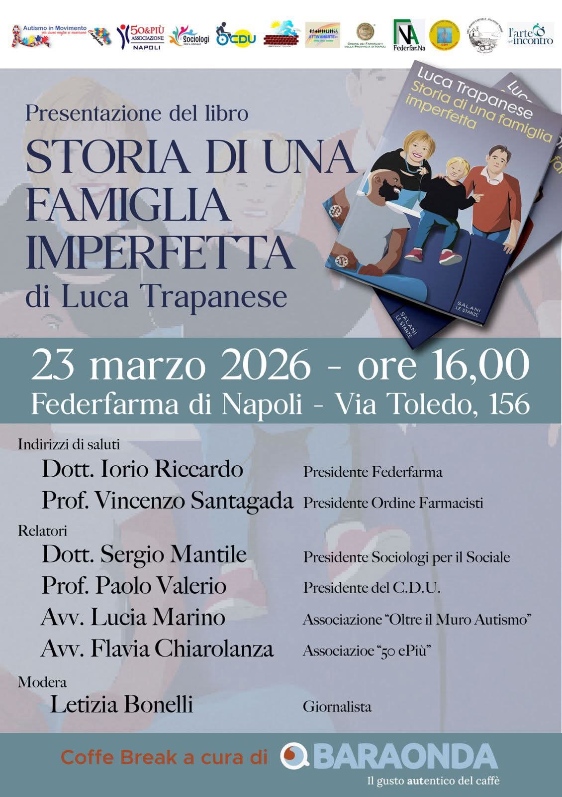 NAPOLI – Un incontro dedicato all’inclusione, alla famiglia e al valore della diversità: lunedì 23 marzo 2026, alle ore 16:00, presso la sede di Federfarma Napoli in Via Toledo 156, si terrà la presentazione del libro Storia di una famiglia imperfetta di Luca Trapanese.
