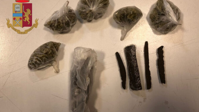Ieri pomeriggio i Falchi della Squadra Mobile, durante un servizio di contrasto allo spaccio di sostanze stupefacenti, hanno effettuato un controllo presso l’abitazione di un uomo in via Riviera di Chiaia dove hanno rinvenuto 5 bustine contenenti circa 8 grammi di marijuana, 6 stecche di hashish del peso di circa 24 grammi e 110 euro.