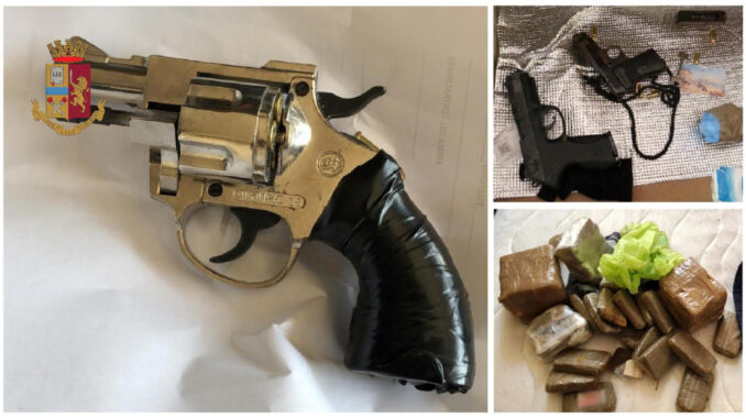 Ieri pomeriggio gli agenti della Squadra Mobile e del Commissariato Bagnoli hanno effettuato un controllo presso uno stabile di via Cupa Capano dove, all’interno di un appartamento disabitato, hanno rinvenuto una pistola Beretta con matricola abrasa cal.7,65, una pistola replica marca “Bruni” cal.9 e 51 panetti di hashish del peso di circa 4,3 kg.