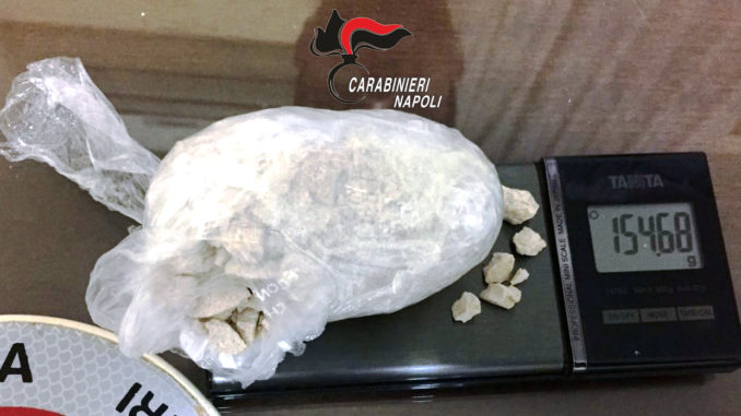 Gli operanti l’hanno notato durante un servizio di pattuglia e osservazione organizzato per il controllo del territorio: era in via comunale Ottaviano intento a confabulare con un sorvegliato speciale del posto. Avendo riconosciuto uno dei militari dell’Arma si è dato ala fuga rifugiandosi nella casa al secondo piano del sorvegliato speciale e disfacendosi di un involucro lanciandolo dal balcone.