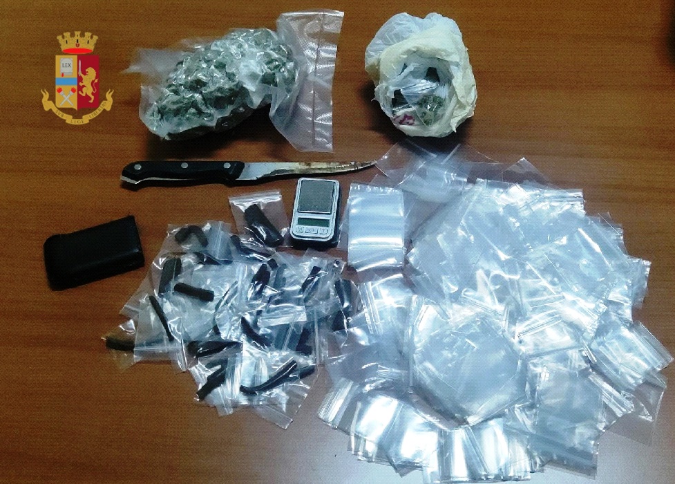 Inoltre, gli agenti hanno effettuato un controllo nell’appartamento dell’uomo dove hanno rinvenuto 20 bustine contenenti 22 grammi circa di marijuana, una busta con 110 grammi circa della stessa sostanza, 33 bustine con 80 grammi circa di hashish, un bilancino di precisione e diverso materiale per il confezionamento della droga.