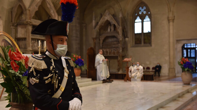 Alla Santa Messa – officiata oggi dal Vescovo di Napoli Cardinale Crescenzio Sepe e concelebrata da Padre Giovanni Paolo Bianco della citata Basilica – è intervenuto il Comandante Interregionale Carabinieri “Ogaden”, Generale di Corpo d’Armata Adolfo Fischione, che ha riconosciuto valore fondante al ruolo etico, morale e in qualche modo “laicamente sacro” delle gesta dei Carabinieri. Senso del dovere, spirito di abnegazione, sacrificio: espressioni che guidano la missione quotidiana di ogni Carabiniere. Affidata con fiducia alla Virgo Fidelis una preghiera ai caduti dell’Arma e ai militari recentemente deceduti a causa del coronavirus. Preghiera che ha abbracciato simbolicamente anche i loro cari e le loro famiglie.