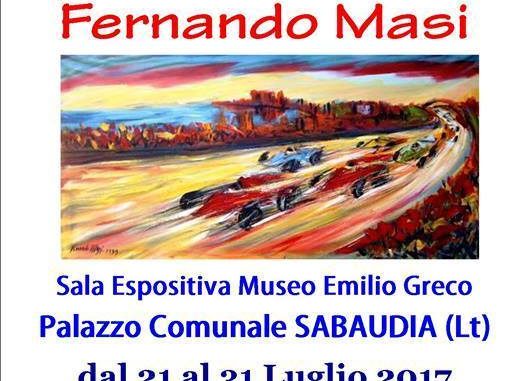 Nel Mondo delle Ferrari e altre Storie” la mostra itinerante del pittore Fernando Masi nella Sala Espositiva del Museo Emilio Greco di SABAUDIA  Latina.Soprannominato anche il pittore delle Ferrari per la sua dinamica e veloce esecuzione di pittogrammi dedicati al mondo della formula 1 le opere del maestro toccano tematiche di forte impatto sociale e ambientale. Una pittura impegnata, ricca di colori e soggetti mediterranei. Una tavolozza personale e unica che unisce la bellezza dell’opera alla denuncia dello scempio ambientale della nostra società. Un pittore impegnato che nella lunga carriera artistica lo hanno visto protagonista nelle maggiori gallerie e musei di tutto il mondo. Famoso per i suoi murales ne ha eseguiti tanti, che fanno parte del patrimonio artistico italiano basti pensare all’opera “ Natura e Vino” di Dozza Imolese (Bo) il paese dei murales o a quella di Rittana (Cn) dove predomina una grande figura femminile che rappresenta l’origine della vita o ancora il murales di Pavullo sul Frignano (Mo) dove l’artista ha rappresentato la “ gente del Sud” e quello di Montefalcione lungo 100 mt un grande tributo a Ayrton Senna e al mondo delle Ferrari e della Formula 1, e quello di Baiano (Av) un capolavoro intitolato “ Natura e Magia” che campeggia nella corte comunale.